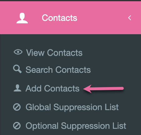 1. To upload your list, click on Contacts, then Add Contacts.