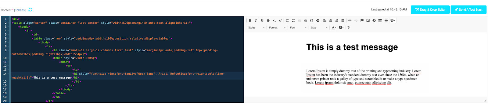5. Once your custom field is created, you can add it anytime in your blasts from within the Tokens area.